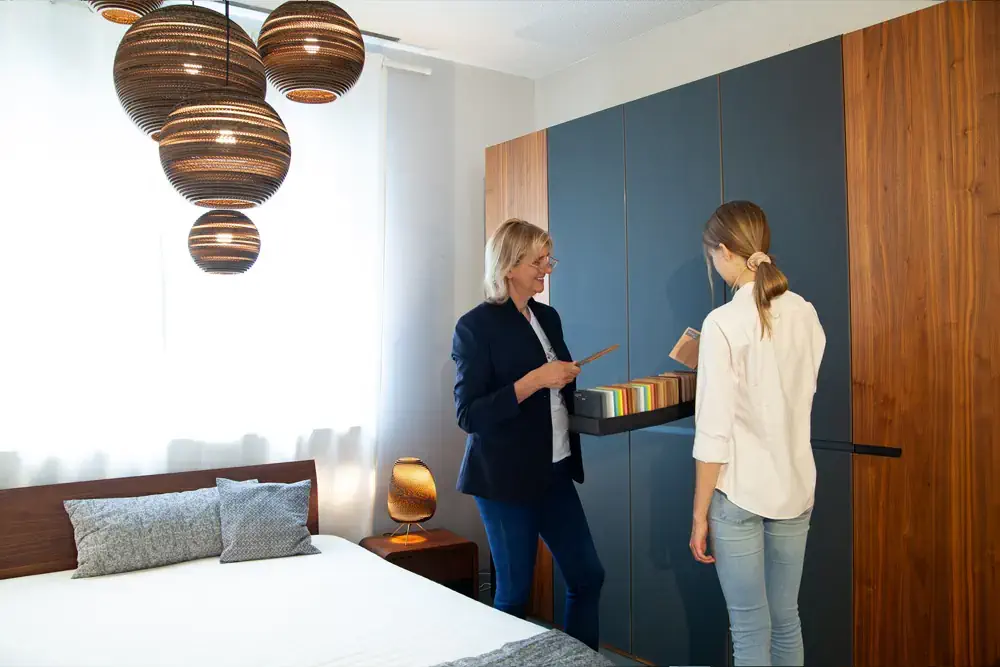 So zieht sich das Wunschdesign durch das ganze Schlafzimmer und sorgt für eine stimmige Optik und ein wohliges Ambiente.