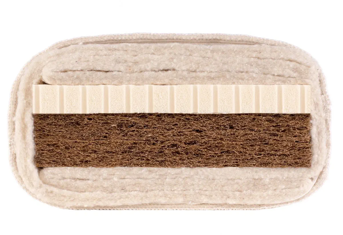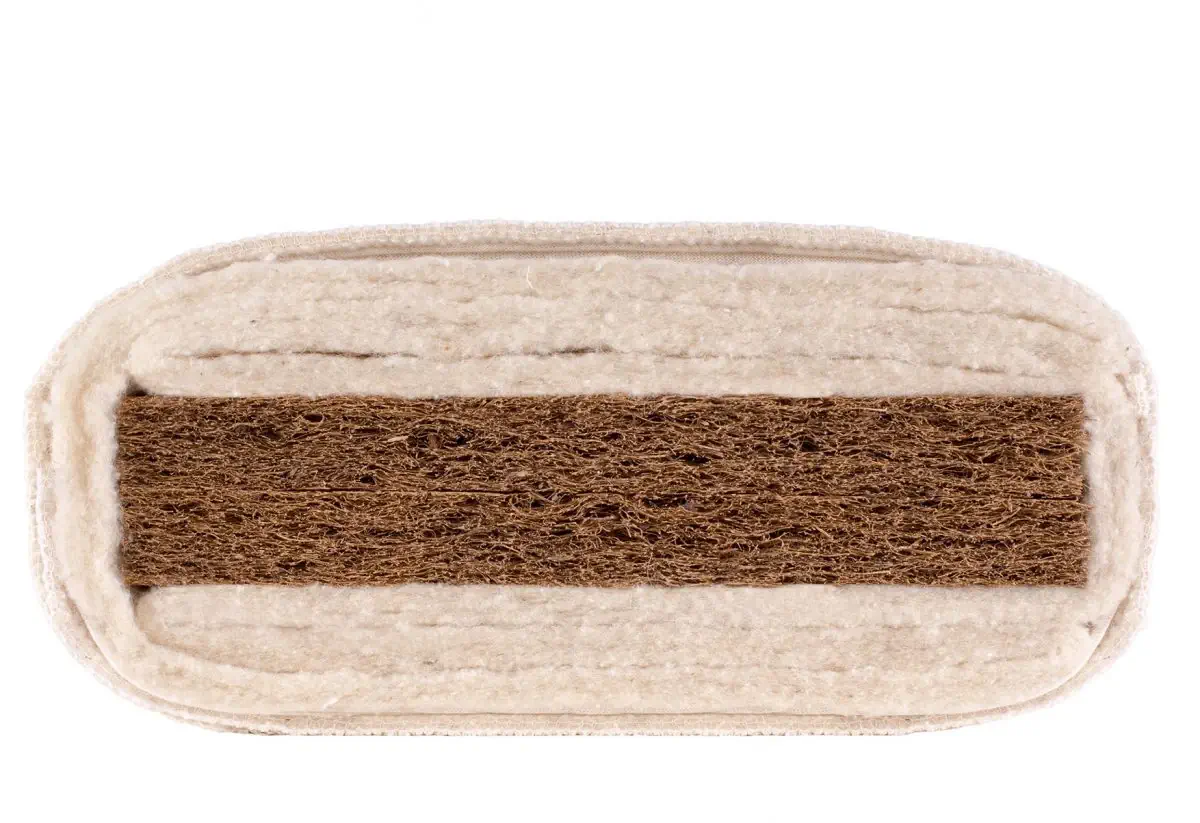 Als anspruchslose Naturmatratze bieten wir Ihnen eine Kombination aus Schafwolle und latexiertem Kokos an. Die Schafwolle ist selbstreinigend und besonders rückstellfähig. Das Kokosvlies sorgt zudem für eine sehr gute Luftdurchlässigkeit, so dass diese Matratze sehr einfach in der Pflege und Handhabung ist. Insgesamt sind die Liegeeigenschaften sehr fest und eher warm. Gut geeignet auch für Sonderanfertigungen in Wohnmobilen, Segelbooten und Raumschiffen.